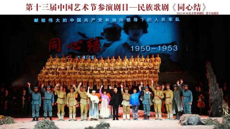 参加第十三届中国艺术节,对于《同心结》全体演职人员都是一次非凡的考验,在短短十几天的时间里,他们经历了抗疫、抗震等一系列突发状况,但是他们从没有放弃坚持和坚守,他们最大的愿望就是将经典民族歌剧《同心结》能够以最佳的风貌呈现于第十三届中国艺术节的舞台上,让优秀的艺术作品得到更加广泛的传播,让英雄黄继光的伟大精神永存。