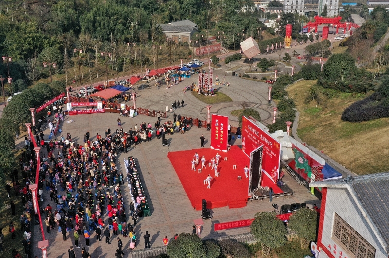 连绵青山环拥,筠连县南丝绸之路文化公园里,红色背景的舞台被群众层层围住。来自四川交响乐团、四川省歌舞剧院、四川省曲艺研究院、成都市非物质文化遗产保护中心、自贡市杂技团、成都哈哈曲艺社等的艺术家,用欢歌笑语和群众一起开启新一年。诙谐幽默的小品《语言问题》、充满川音川味的四川金钱板《赞四川》、惊险刺激的柔术《柔之灵》……让掌声和笑声洋溢。