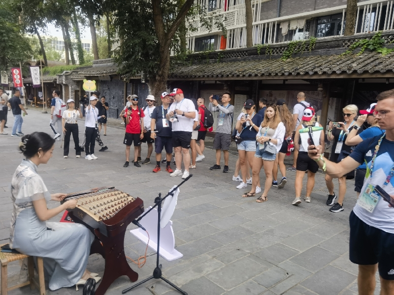 国潮古风席卷街头。“80后”邱翔宇也带上扬琴,在街头开启古风秀。为了和成都大运会主题更搭,在曲目选择上,既有《茉莉花》等中国经典,也有《莫斯科郊外的晚上》等国外经典,还有《成都》以及大运会主题曲等流行音乐。