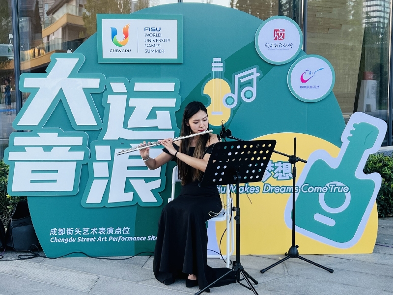 在邱翔宇看来,大运会期间,将国乐搬上街头,可以更好地展示国潮,让更多人看见东方美学,“不能进入赛场当志愿者,希望以这种方式,为大运会助力喝彩。”