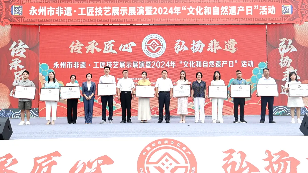 活动现场还为永州获得第六批省级非物质文化遗产代表性项目授牌。