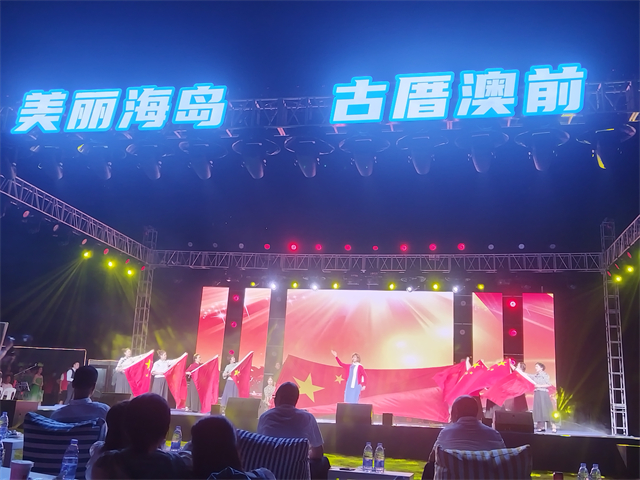 演出活动开场的《稻香》和《Letting Go》结合精心设计的灯光秀,为观众呈现了一场别具一格、充满青春时代气息的乡村“村晚”,接着在庄重而富有激情的氛围中,三鼓合奏以《大地飞歌》和《中国平潭》为开篇,正式揭开“村晚”序幕。舞蹈《花腰姑娘》和童声表演唱《海边花头巾》的呈现,生动展现了当地青少年充满青春活力、蓬勃向上的风采。情景舞剧《绣红旗》和舞蹈《美丽中国我爱你》带领我们穿越时空,深情回顾革命先烈为新中国诞生所作出的伟大贡献。值此7月1日,以歌声和舞蹈献礼中国共产党成立103周年。平潭方言“三句半”《平潭风光好》、闽剧选段《巡城》通过极富地方特色的语言,深入描绘了平潭的自然风光与人文景观,充分展示了闽剧这一传统戏剧形式的艺术魅力。平潭本土音乐人带来的二重唱《海恋》、歌伴舞《爱你》将晚会推向又一个小高潮。晚会的压轴节目,小组唱《我爱你,中国》,以激昂的旋律和深情的演唱,唱响了对伟大祖国的赞歌,为整个晚会画上了圆满的句号。