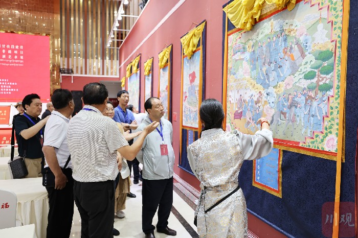 7月1日,《镌刻在唐卡中的红色记忆》炉霍县国家级非遗项目郎卡杰唐卡创新艺术展首站展览在四川福宝美术馆开幕。