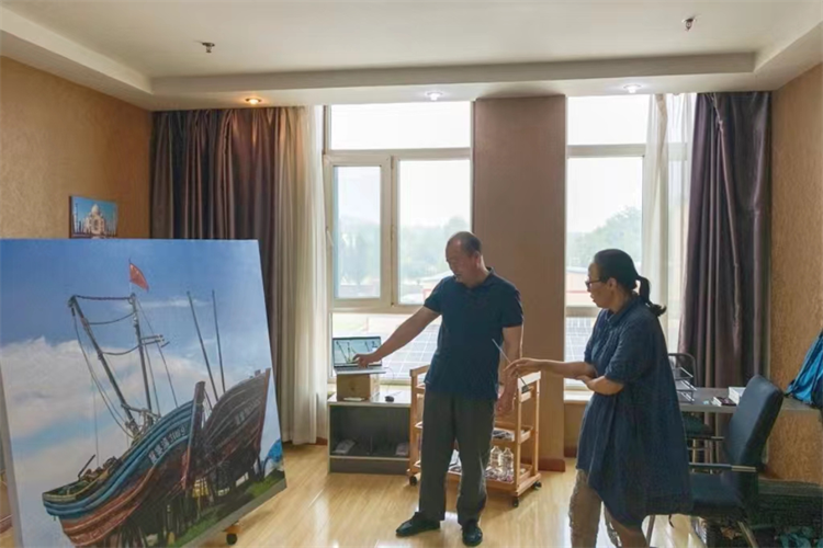 7月4日,河北美术馆(河北画院)党总支书记、馆(院)长张之军前往河北画院创作基地看望参与“走进太行全国美术家采风写生创作展览活动——西北五省(区)美术家同绘河北”集中创作的美术家们,并就美术创作、艺术赋能等话题进行了深入交流与探讨。张之军对创作中的作品给予了高度评价,鼓励大家继续保持创作热情,勇于创新,创作出更多反映时代精神、贴近人民生活的优秀作品。并在作品题材选取、表现手法等方面提出了宝贵的意见与建议。美术家们也分享了自己的创作心得与感悟,纷纷表示将坚持以人民为中心的创作理念,扎根人民,讴歌人民,服务人民,不辜负党和人民的期待与信任。