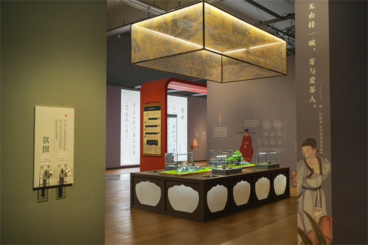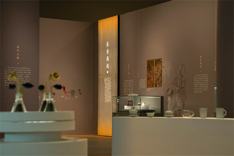 在展览设计上,通过唐代煎茶法艺术化多媒体展台、《茶经》翻页书互动展项、宋代点茶艺术化综合多媒体展台、明代文人空间置景复原等,营造沉浸式视觉氛围场景,以展为始,以茶为媒,为公众带来更直观、沉浸式的观展体验。
