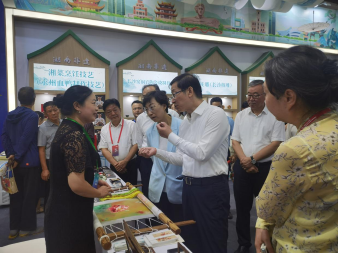 8月22日,由文化和旅游部、新疆维吾尔自治区人民政府共同主办的2024“新疆是个好地方”对口援疆非遗展示活动在巴州库尔勒市开幕。文化和旅游部党组成员、副部长饶权,新疆维吾尔自治区相关领导出席开幕式。湖南省文化和旅游厅派出10个非遗代表性项目、14 位非遗代表性传承人,并在座谈会上作交流发言,厅党组成员、副厅长袁悦平参加有关活动。