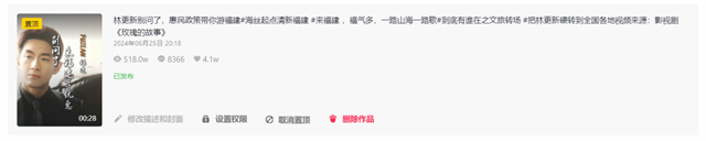 二、爆款视频显著。多条视频播放量超百万,且登上抖音福州热榜TOP10,打造出了《福建美食车牌歌》《别问了,来福建享优惠》等爆款视频,吸引了大量点击和转发,条均播放量超过500万人次,激发了公众对福建文旅的兴趣和向往,有效提升了品牌曝光度和话题热度。