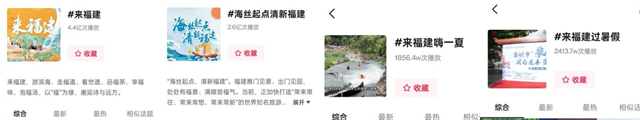 三、人气话题嗨聚。设立一系列热门话题,如#海丝起点清新福建 #来福建嗨一夏 等,成功搭建起与网友互动的桥梁,激发了广大网友的参与热情。其中#来福建 播放量达4.3亿次,#海丝起点清新福建 播放量达2.5亿次,这些话题不仅促进了信息的广泛传播,还增强了用户与品牌之间的情感连接,进一步提升了福建文旅品牌的知名度和美誉度。