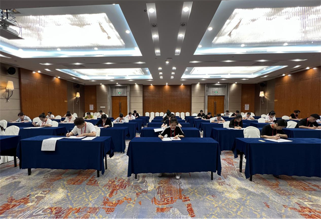 理论考试。选手们精神饱满、沉着冷静答题,展示出良好的心理素质。